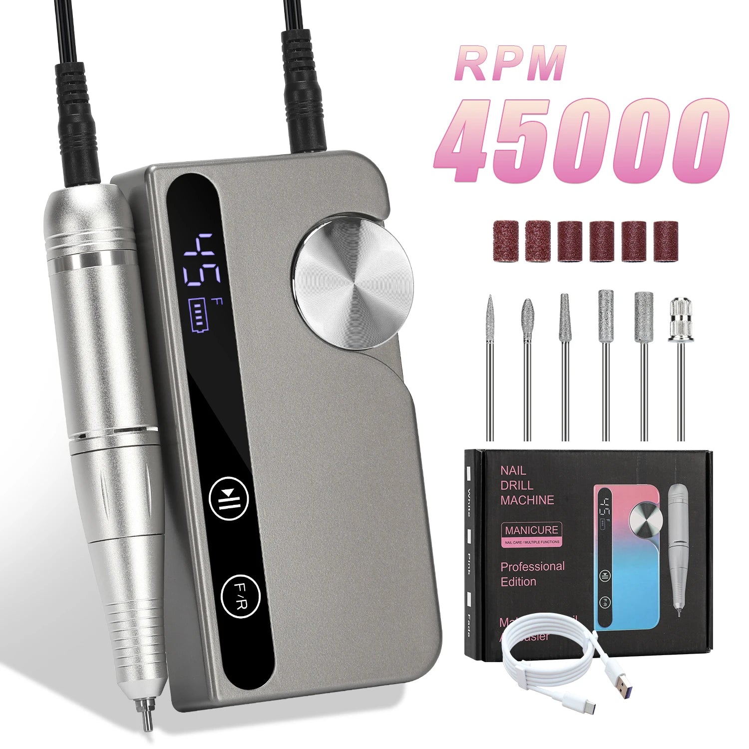 45,000RPM Professional Nail Drill – Portable LCD Electric E-File