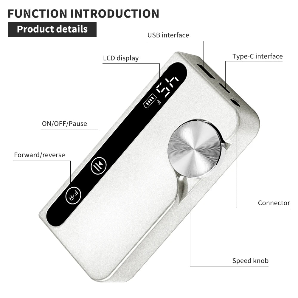 45,000RPM Professional Nail Drill – Rechargeable Low-Noise Polisher