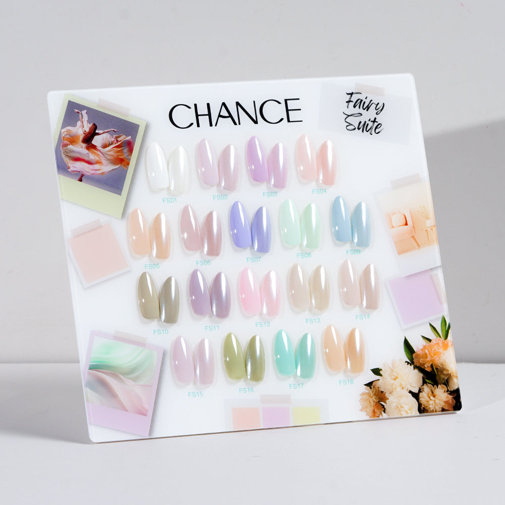 Chance Fairy Suite Collection 0.5oz - 18 Colors w/ 1 Counter Display, 3 Chance No Wipe Top Coat 0.5oz & 1 Cre8tion White Pearl Chrome